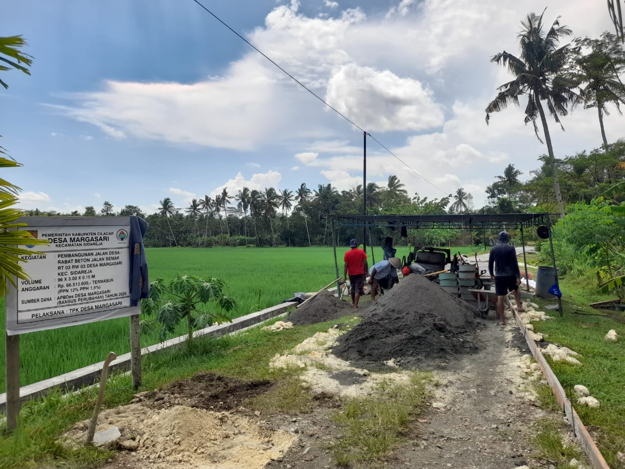 Margasari - Pemerintah Desa Margasari terus berkomitmen meningkatkan kualitas infrastruktur desa guna menunjang mobilitas, keselamatan, dan aktivitas ekonomi masyarakat. Salah satu upaya tersebut diwujudkan melalui pelaksanaan Pembangunan Jalan Desa Rabat Beton Jalan Semar yang berlokasi di RT 03 RW 03 Dusun Warureja, Desa Margasari, Kecamatan Sidareja, Kabupaten Cilacap.