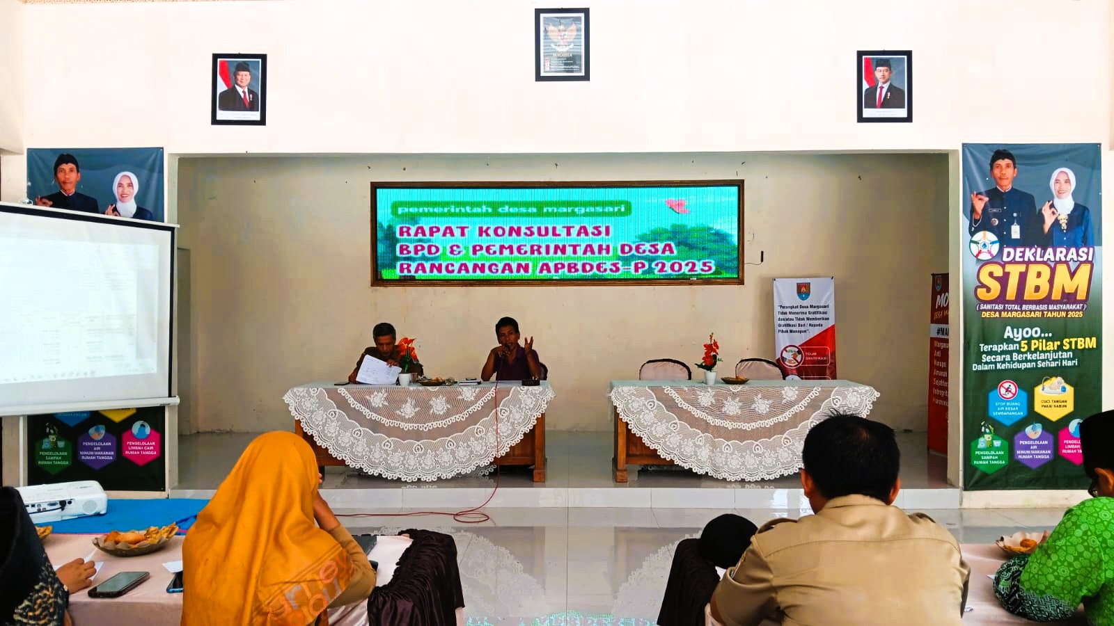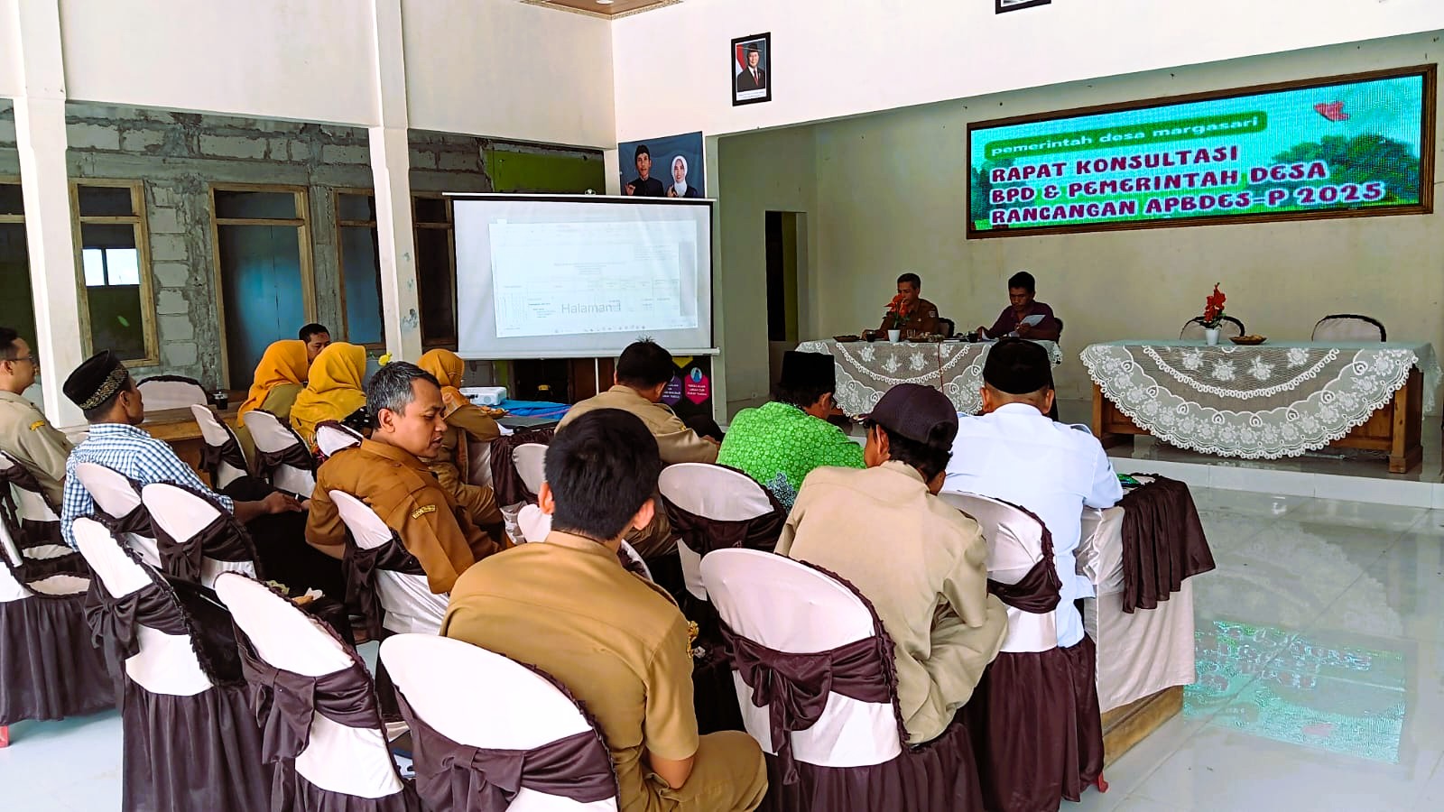 Margasari, 24 November 2025 - Pemerintah Desa Margasari bersama Badan Permusyawaratan Desa (BPD) menggelar Rapat Konsultasi membahas Rancangan Perubahan APBDesa Margasari Tahun 2025. Kegiatan yang dilaksanakan pada Senin, mulai pukul 13.00 WIB hingga selesai bertempat di Balai Desa Margasari, berlangsung dalam suasana tertib, komunikatif, dan penuh integritas.