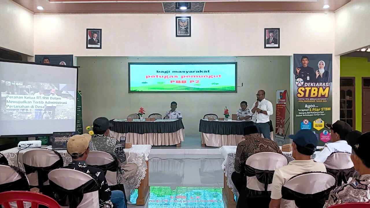 Kegiatan yang dimulai pukul 13.45 Wib bertempat di Balai Desa Margasari ini diikuti oleh para petugas pemungut PBB-P2, ketua RT, ketua RW, serta segenap perangkat desa. Acara berlangsung dengan suasana penuh semangat dan antusiasme peserta untuk memahami pentingnya administrasi pertanahan yang tertib, transparan, dan berintegritas.